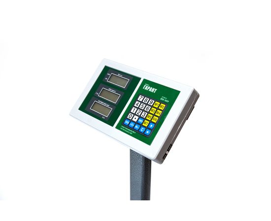 Торговые напольные электронные весы Гарант ВПН-1000У с усиленной платформой, выполненной из прочной конструкционной стали с рифленой поверхностью. Надежные недорогие товарные весы с удобной наклоняемой стойкой. Предназначены для взвешивания, фасовки и определения стоимости товаров в быту и на предприятиях.