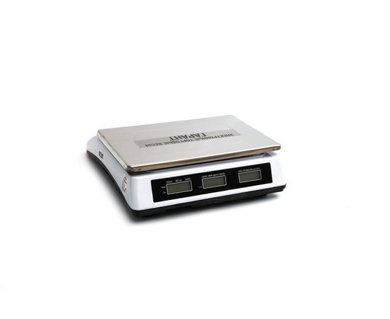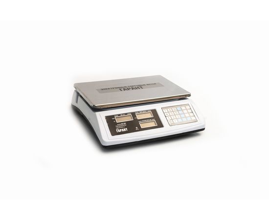 Весы торговые Гарант ВП-50У — это электронное устройство среднего класса точности (III) для фасовочного взвешивания товаров. Прибор применяется в торговле, производстве и сфере общественного питания. Устройство позволяет взвешивать объекты массой до 50 кг. В указанном диапазоне взвешивания прибор обладает чувствительностью 5 г. Весы оснащены ярким флуоресцентным ЖК-дисплеем с кассовым интерфейсом. Питание прибора производится автономно от встроенного аккумулятора. Устройство оснащено функцией автоотключения и функцией тарирования.