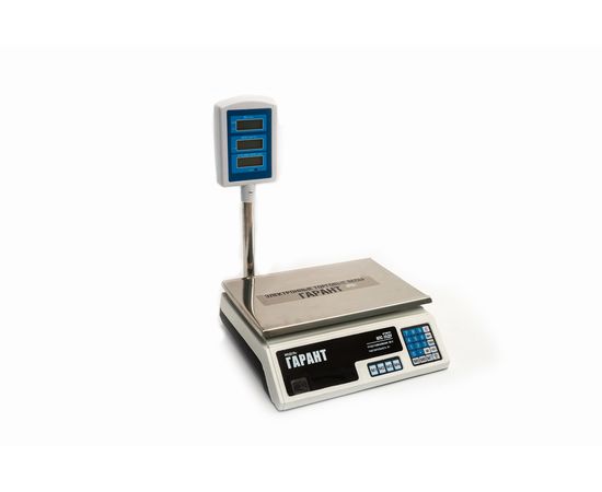 Весы торговые (до 35 кг.) ВПС-35 ДУ ''Гарант" LCD, 220V+АКБ (датчик зарядки батареи, усиленная АКБ) точность 5 гр., стойка, платформа 34х23 см. - нерж. сталь, счетные, электронные, (с дисплеем для покупателя)
